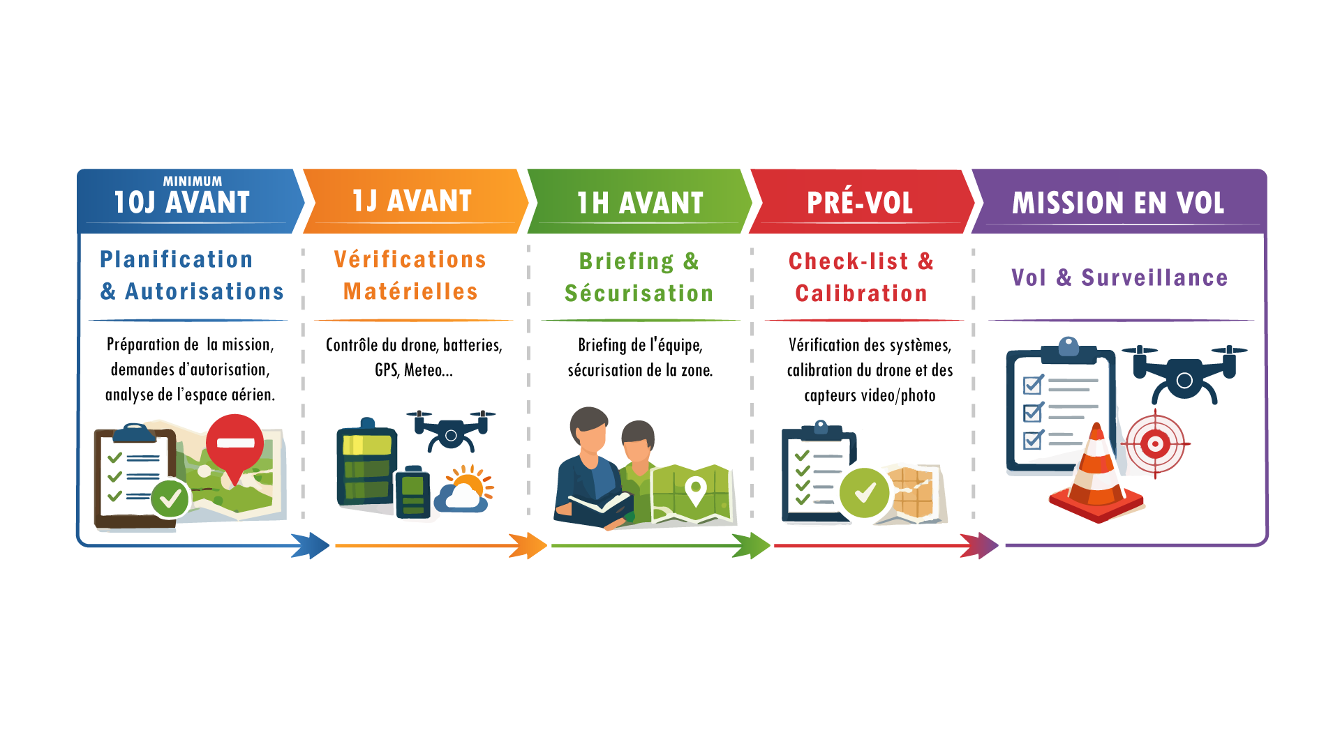 En suivant une procédure précise, étape après étape, on obtient une meilleure préparation et une exécution de la mission en toute sécurité.
