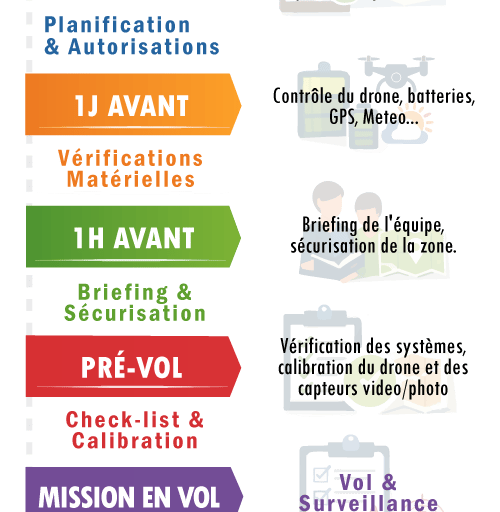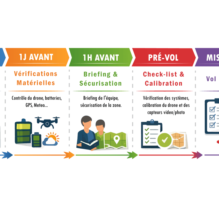 Vérifier la météo, préparer le matériel, obtenir les autorisations, et planifier le trajet du drone.